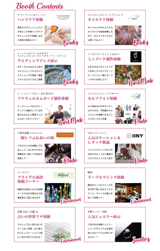 全17社が参加し、さまざまなコンテンツをご用意しております。美容に関するマッサージ体験、ワークショップ、マジック、占い、ホテルグルメの先取り試食など、楽しいコンテンツが満載の企画となっております。さらに、タイムイベントではパイプオルガンの演奏を同ホテル内「アトリウムガーデンパーク」で無料鑑賞もご用意しており、イベント参加者は、レストランの利用が20%OFFとなり、一日を通じてホテルの魅力を体感していただけます。