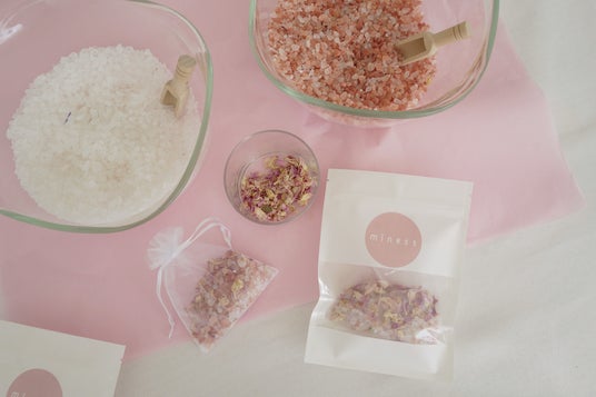 minessのアイテムと一緒に、ボディケアの時間を楽しんでいただけるオリジナルのバスソルト作りを実施しました。