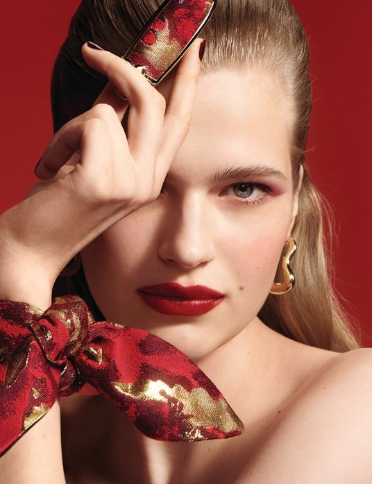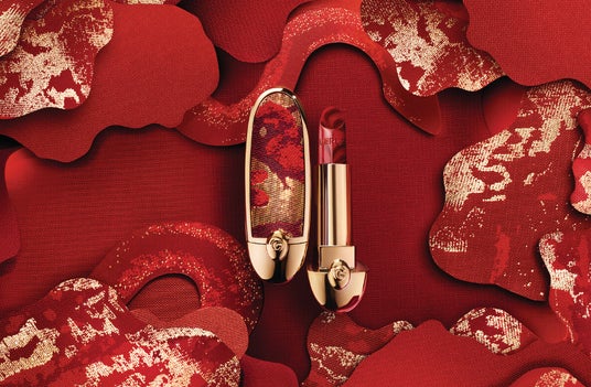 新年を祝福して限定発売される本コレクションの中心的存在として選ばれた、カスタマイズ可能で贅を尽くしたケア効果を誇るリップスティック〈ルージュ ジェ〉より、マーブル模様が美しいレッドシェード、「669 ミスティック レッド」が加わります。