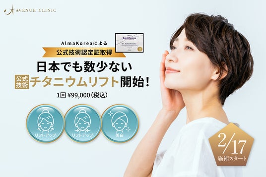 アヴェニュー六本木クリニックでは、2025年2月17日(月)より韓国発祥の新世代たるみ治療「チタニウムリフト」を新たに導入いたします。ダウンタイムを気にせず、これまでにない『フェイスラインの引き上げ』『肌の引き締め』『美白』3つの効果を一度に即時的に実感できる革新的な治療です。