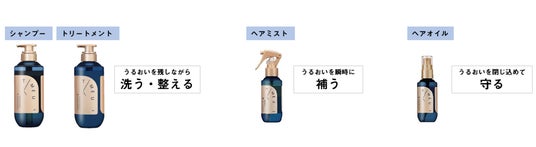 このタイムエフェクト発想※3によって、洗髪後すぐにドライヤーをかけずに髪を自然乾燥させてしまったり、タオルで巻きながらスキンケアやボディケアなどをしている間にも髪のうるおいがキープされ、時間を有効活用したヘアケアができます。