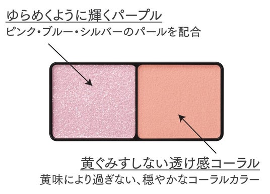 今季はブルベ・イエベ問わずなじむ、チュールのようにトレンドカラーを纏って楽しむ「ゆらめきパープル×透け色コーラル」が登場。肌の色の延長のような穏やかなカラーとゆらめくようなパールで、上質で洗練された印象に仕上がります。