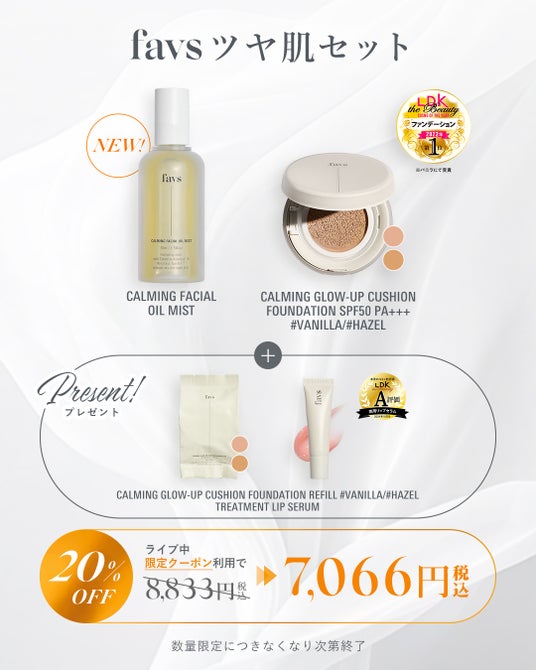 株式会社ダイヤコーポレーション(所在地:東京都新宿区 代表取締役:高野祐一)は、楽天市場にて、山中美智子による美しく時を重ねるスキンケアブランド、〈favs(ファブス)〉の「楽天市場ショッピングチャンネルLIVE」を2025年2月10日(月)20時00分より開催いたします。