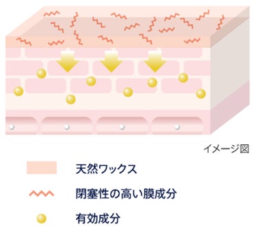 天然ワックスと閉塞性の高い膜成分の複合膜を組み合わせたオリジナル処方です。肌を閉塞することにより、有効成分を角層深くまで浸透促進し、シミ・ソバカスを防ぎたい部分に集中的に美白※2アプローチをします。