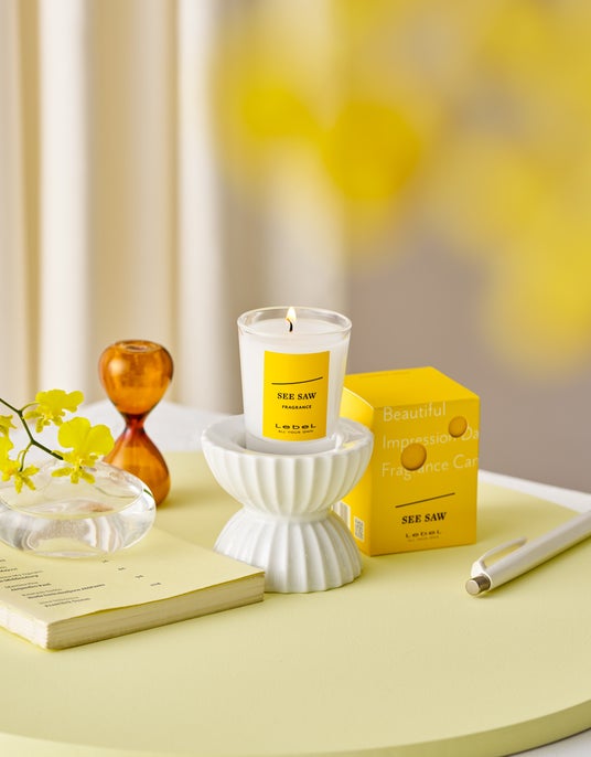 SEE/SAW HAIR CARE FRAGRANCEは約60種の香り成分が織りなす奥深く透明感のある香調。シトラスをベースに、ミモザやピオニーなどの花々がみずみずしい彩りを与えながら、シダーウッドとソフトアンバーの落ち着いたラストノートが、やさしくほのかに持続。フレグランスキャンドルは、そこからミモザの香りを際立たせた特別な香調です。
