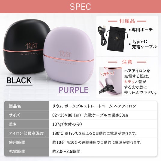 製品名:RYM(リウム)ポータブルストレートヘアアイロン