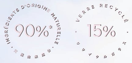 ボトル本体にはリサイクルガラスを15%使用。アイコニックな“逆さハート” のキャップは、70%以上に生物由来(バイオ)素材を活用しています。
