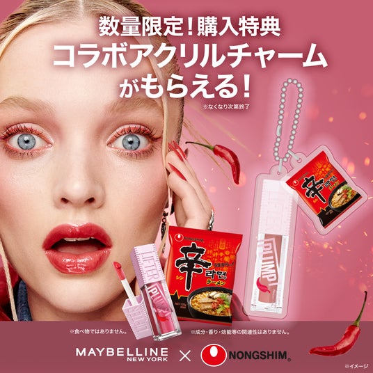 メイベリン ニューヨークは、韓国即席麺ブランド「辛ラーメン」(農心ジャパン)との新たな取り組みを発表いたします。2025年2月22日(土)に発売する#唐辛子*¹プランパー「メイベリン リフタープランプ L」と「辛ラーメン」の共通の価値観である“刺激と楽しさ”を融合させた、斬新なビジュアルやスペシャルプレゼントキャンペーンなどを展開。今後、店頭およびSNSを通じて順次情報を発信してまいります。