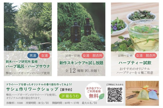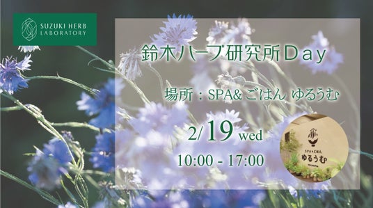 株式会社鈴木ハーブ研究所は、2025年2月19日(水)に茨城県水戸市内にある温浴施設「SPA&ごはん ゆるうむ」で『鈴木ハーブ研究所Day』を開催します。当日は施設内のお風呂とサウナに弊社ハーブガーデンのドライハーブを使用し、弊社スキンケア商品の試し放題やオリジナルハーブティーの試飲などを実施します。