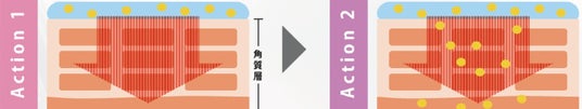 肌のすみずみまで、素早く効率的に配合成分を届けるための2ステップアプローチ。