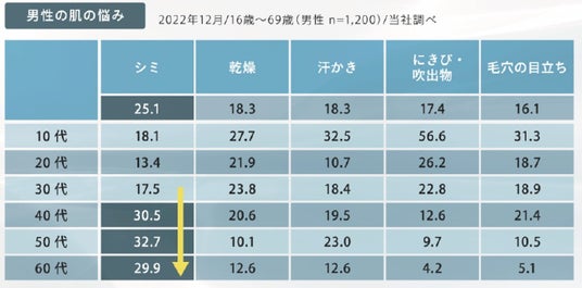『マニフィーク』は、オーガニック植物や、生命の源である海、香草、海藻をはじめとする大自然の恵みをふんだんに取り入れた“ネイチャーサイエンスケアブランド”です。近年多様化するニーズに応え、スキンケア効果や使い心地にこだわりジェンダー問わずお使い頂ける“ジェンダーレス発想”によるスキンケア・ヘアケア商品を展開し、その存在感を高めてきました。男性の肌悩みは「シミ」が最も多く、特に30代以降、その割合が大きくなっていることから、「シミ対策」にフォーカスした高機能スキンケアを発売することでスキンケアのラインナップ強化をはかり、ブランドの新たな愛用者の獲得を目指します。