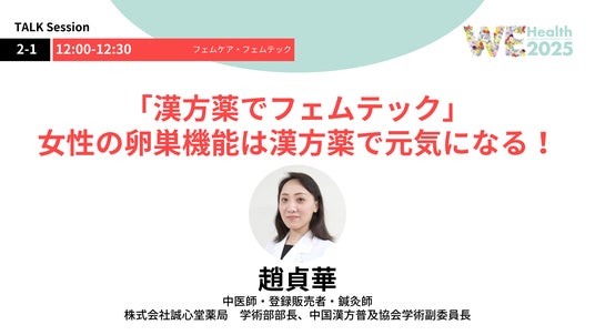 女性特有の健康課題に寄り添う「フェムテック」の視点から、漢方薬が卵巣機能のサポートにどのように役立つのかを掘り下げるセッションです。ストレスや加齢などで変化する体のサインに漢方はどう応えるのか、専門家がそのメカニズムや具体的な改善例を紹介します。体の内側から元気になる方法を見つけてみませんか?女性が持つ可能性を最大限に引き出すためのヒントが満載です!