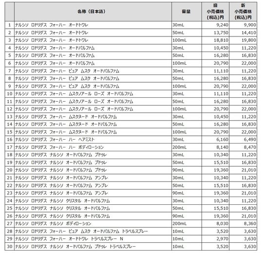 〈ナルシソ ロドリゲス パルファム〉は、香水原料及び包装材料の高騰により、一部商品の価格を2025年4月17日(木)より改定させていただきます。今後も大切なお客さまに、より一層ご満足いただける商品をご提供できるように努めてまいります。何卒ご理解いただくとともに、今後ともご愛顧を賜りますようお願い申し上げます。
