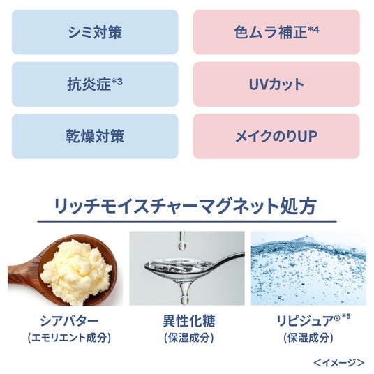 さらに、「リッチモイスチャーマグネット処方」により、肌表面にうるおいと保護膜を形成。乾燥を防ぎ、快適な肌状態に導きます。