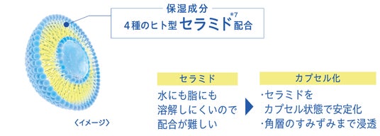 4種のヒト型セラミド*⁷をカプセル化することで安定に配合、角層のすみずみまで浸透します。