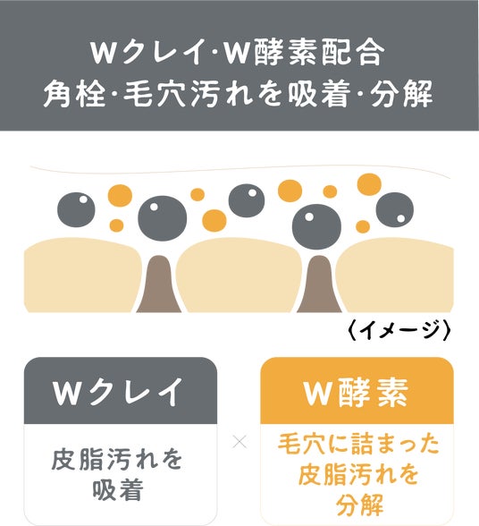 皮脂汚れを「吸着」するWクレイと、皮脂汚れを「分解」するWの酵素配合。