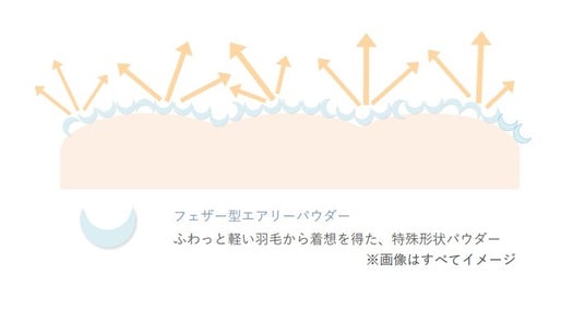 ふわっと軽い羽毛から着想を得た、特殊形状パウダー。ふわかる感触で圧迫感がほとんどなく、つけていないかのような軽さ。ソフトフォーカス効果で、気になる肌のアラや影をぼかしてくれるので厚塗りしなくてもふんわり美肌質感を叶えます。