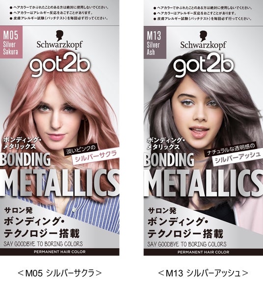 今回、髪を内側から保護・強化*するボンディング・テクノロジーを搭載し、極上ツヤ×シルバー発色でメタリックな質感を楽しめる「got2b ボンディング・メタリックス」から、昨今人気のくすんだピンクやシルバーのトレンドを受け、桜のように淡いピンクの「シルバーサクラ」とナチュラルな透明感の「シルバーアッシュ」の2色が新たに登場します。
