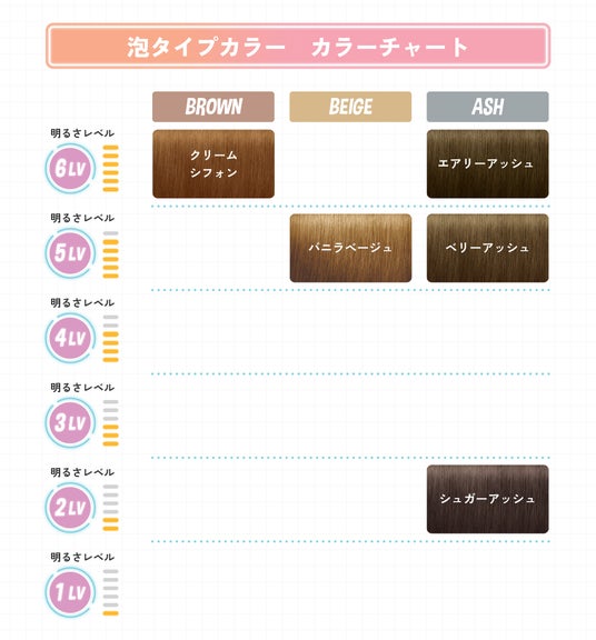 髪に塗りやすく浸透しやすいモチモチ泡で、初めてのセルフカラーでもムラなく簡単に染めることができます。高発色・トーンアップ処方で、黒髪でもしっかり明るいカラーに。