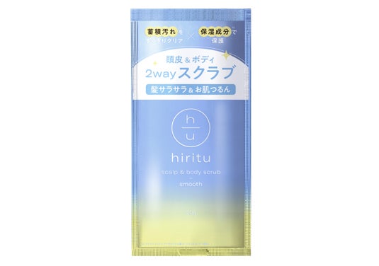 頭皮&ボディに使える2wayスクラブは‟ただ落とすだけ”ではない、hiritu独自の5つのアプローチで頭皮や肌環境を整え、健やかな状態をキープ。根元からサラふわ髪&つるんとクリアな素肌へ導きます。とろりとなめらかなテクスチャのスクラブなので、肌を労りながらマイルドにケアが可能です。また、水が入りづらいチューブタイプを採用し、最後まで衛生的にご使用いただけます。スムースシリーズ共通の上品で華やかな『ペアー&ムスク』の香りでバスタイムをお楽しみください。