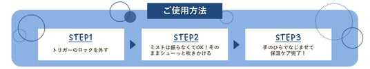 また、キメ細かいミストが長く噴射されるので、1プッシュで広範囲のケアが可能。逆さ向きでもお使いいただけるので手の届きにくい背中のケアにもぴったりです。
