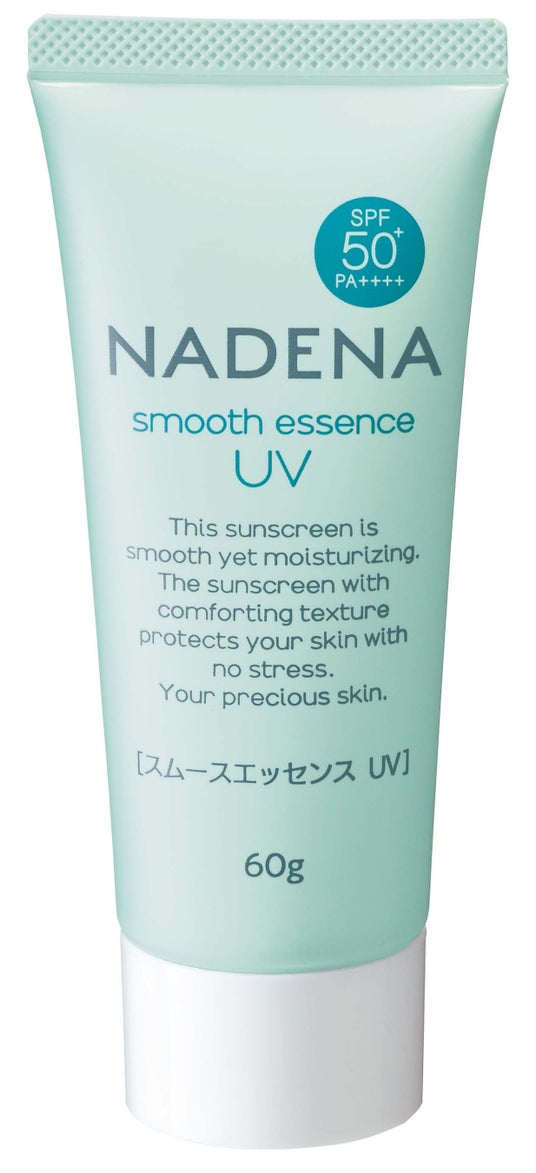 「ナデナ」のブランド名は、自分を癒すように撫でたくなるような触り心地の良い肌になりたいという意味を込めています。「スムースエッセンスUV」はパウダーのように軽いタッチのクリーム状の日焼止めで、伸ばすとする―っと心地よく伸び、潤いを感じるテクスチャーでありながら肌にしっかり定着。定着後はサラサラ感を感じる「アクアスムース処方」を採用、心地よいサラサラ感と潤いで夏の乾燥からもお肌を守ります。