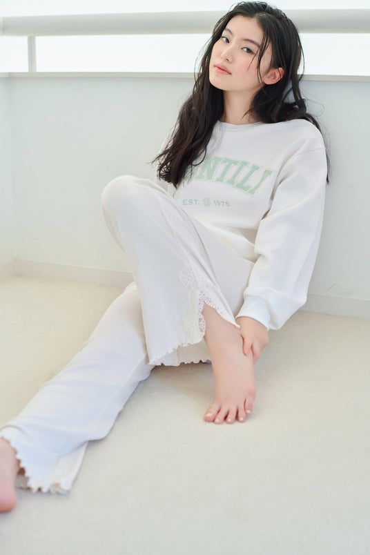 シルエットはゆったりめサイズ感で、ロングパンツはストレートデザインに仕上げました。