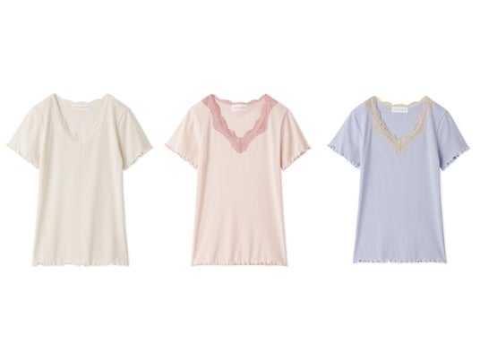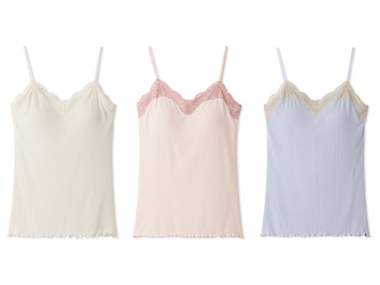 胸元をレーシーに仕上げたキャミソールとショートスリーブプルオーバーが登場。
