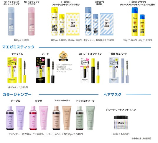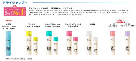 ダイアンは、2013年にブランドが誕生してから10年以上が経ちました。ひとりひとりの好みやその日の気分に合わせてお使いいただけるよう、シャンプー・トリートメントだけでなく、ヘアマスクやヘアミルク、ドライシャンプーなど、様々なインバスおよびアウトバス商品を発売。各アイテムの成分へのこだわりはもちろん、お買い求めいただきやすい価格で全国に展開をしております。