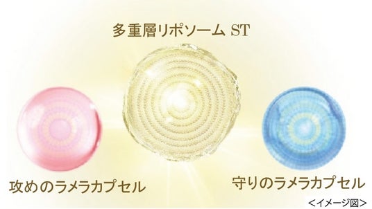 うるおいを与える「攻めのラメラカプセル」と、うるおいを守る「守りのラメラカプセル」を配合。肌をさらにすこやかに保ちます。