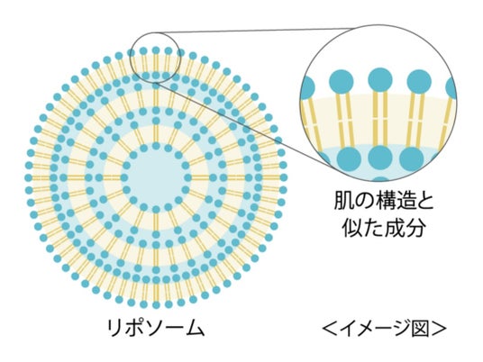 肌の構造と似た成分が層になってできたカプセルです。肌になじみやすく、外側からほどけるようにうるおいを放出します。