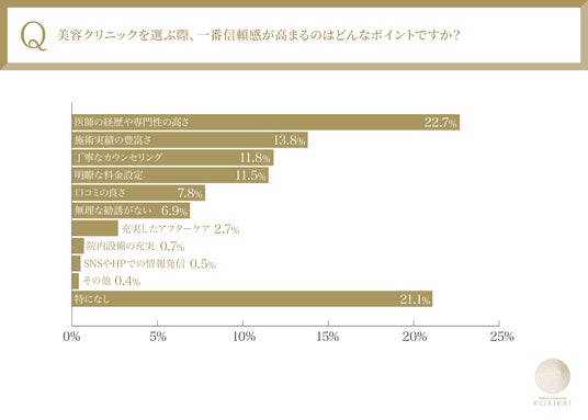 – 最も信頼感を高めるポイントは「医師の経歴や専門性の高さ」(22.7%)