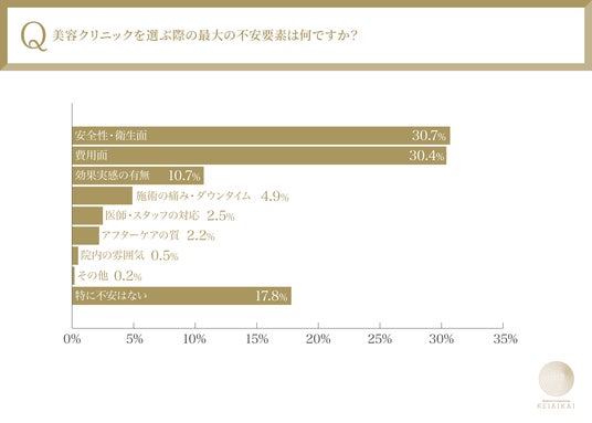 – クリニック選びの不安の大部分は「安全性・衛生面」(30.7%)と「費用面」(30.4%)