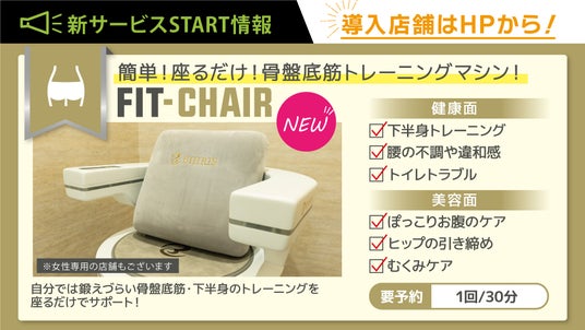全国でアミューズメントフィットネスクラブを運営しているフィットイージー株式会社(本社:岐阜市)は、ゴルフやサウナ、ベースボール、セルフエステなど現在23のアミューズメントサービスを導入していますが、今回は導入店舗で平均予約率70%を超える大人気の「FIT-CHAIR(フィットチェア)」についてご紹介します!