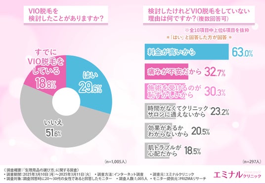 そこで今回、医療脱毛の「エミナルクリニック」は、20~30代の女性を対象に、「生理用品の選び方」に関する調査を実施しました。