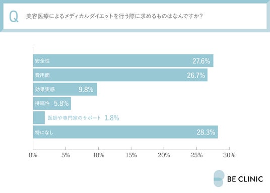 – メディカルダイエットで最も重視されるポイントは安全性(27.6%)と費用面(26.7%)