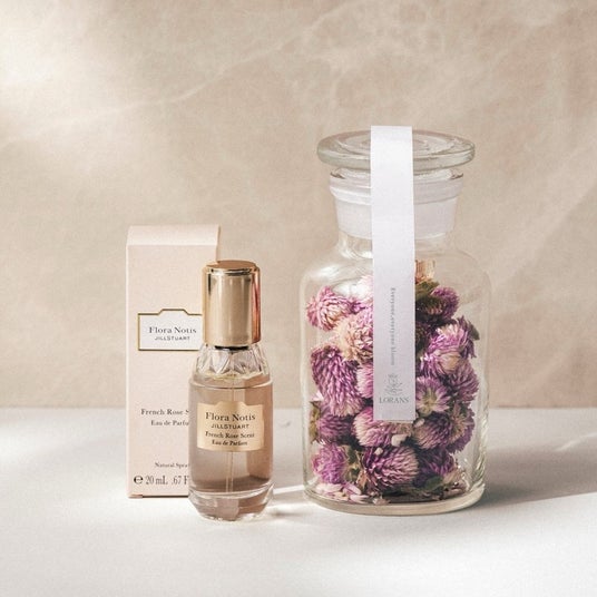 ガラスボトルに入ったポプリと、フローラノーティス ジルスチュアートのオードパルファン20mL*のセット。フラワーボトル単品でもご購入いただけます。