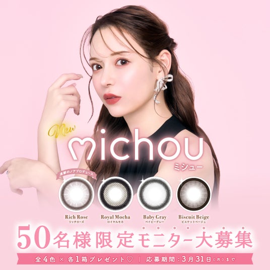 本日3月25日(火)より、michou公式Instagramにて50名様のモニターを募集いたします。