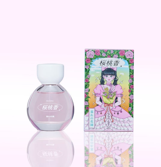 「桜桃香」は、“記憶と香りが紡ぐ物語”をコンセプトに誕生したフレグランスコレクション。香りのディレクション、パッケージのイラスト、さらに楽曲制作まで、マツヤマイカがすべてを手掛け、五感で楽しめる世界観を創り上げました。