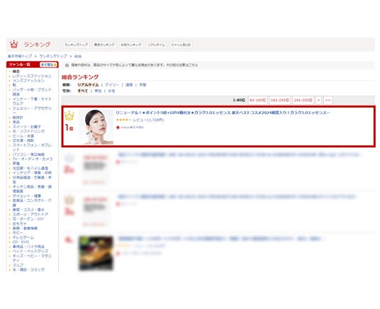発売当日から、国内主要のインターネット総合ショッピングモールであるQoo10公式および楽天公式ショップにて、「ガラク ナイアシン 3.0 エッセンス」が楽天総合ランキングリアルタイム第1位、Qoo10第2位を獲得し、大好評です。