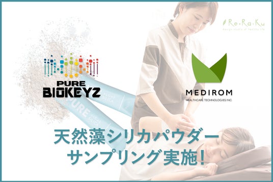 最先端のオーガニックコスメ・ヘルスケア製品を提供するPure Biokeyz Japan株式会社(本社:東京都、代表取締役:松浦 亮介、以下Pure Biokeyz Japan)は、Re.Ra.Kuを中心に全国に300店舗以上リラクゼーションスタジオを展開するリラクグループ(運営:株式会社メディロム・ウェルネス、本社:東京都港区、代表取締役:江口 康二、以下リラクグループ)にて、ケミカルではないオーガニックシリカとして世界初の純度97.1%を誇る「天然藻シリカパウダー」のサンプリングキャンペーンを実施いたします。