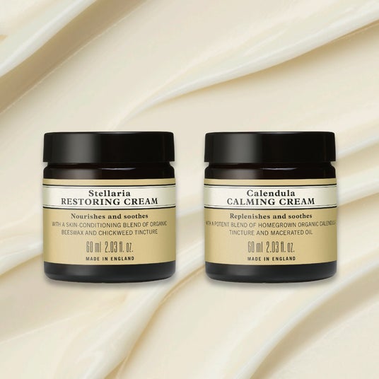 ハーブのチカラで肌トラブル*1に寄り添う、ニールズヤードのハーバルクリーム。リピーターも多いカレンデュラ クリームとステラリア クリームが、アルミチューブから使いやすくリサイクルしやすいガラスジャーへと装いを新たに、お得な大容量で新発売いたします。