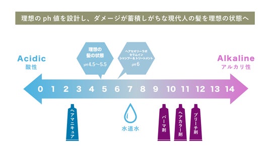 毎日のシャワーやカラー、パーマ剤によって現代人の毛髪は、アルカリ性に傾きがちであると考えられています。
