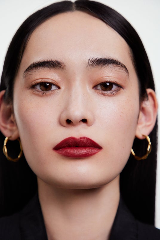 まるで熟成された深みのあるウォームレッド510 MULBERRY MOIREは指でステインして感度高い唇に。