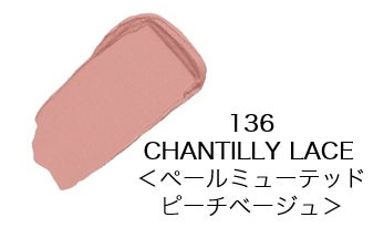ピーチベージュの136 CHANTILLY LACEは肌の色に近くリップコンシーラーとしても。