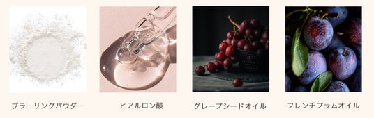 グレープシードオイルやフレンチプラムオイルのボタニカルオイルも、保湿をしスムーズでなめらかな仕上がりをもたらします。