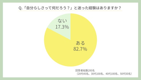 「自分らしさって何だろう?」と迷った経験の有無を尋ねたところ、82.7%の女性が「ある」と回答。