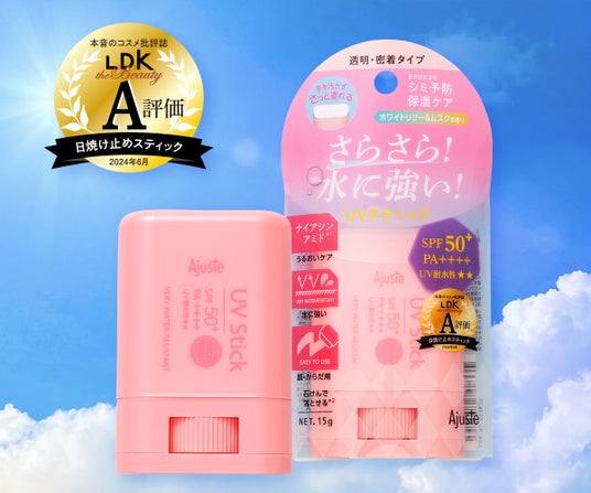 生活関連用品の企画・開発・販売を行う株式会社ドウシシャ(大阪本社:大阪市中央区、代表取締役社長:野村 正幸)は、日焼け止めで人気のブランド「Ajuste(アジャステ)」から、昨年も好評の「ナイアシンアミド(*1)配合」タイプと「CICA」タイプのUVスティックを4月4日(金)より再販売します。