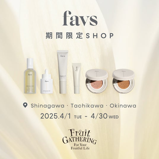 株式会社ダイヤコーポレーション(所在地:東京都新宿区 代表:代表取締役:高野祐一)は、山中美智子によるスキンケアブランド〈favs〉が2025年4月1日(火)よりよりフルーツギャザリング3店舗にて期間限定POP UPを開催いたします。
