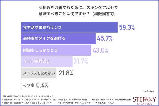 「肌悩みを改善するために、スキンケア以外で意識すべきことは何ですか?」と質問したところ、
